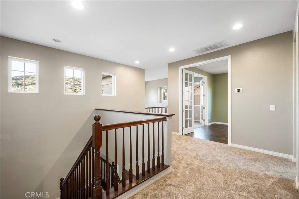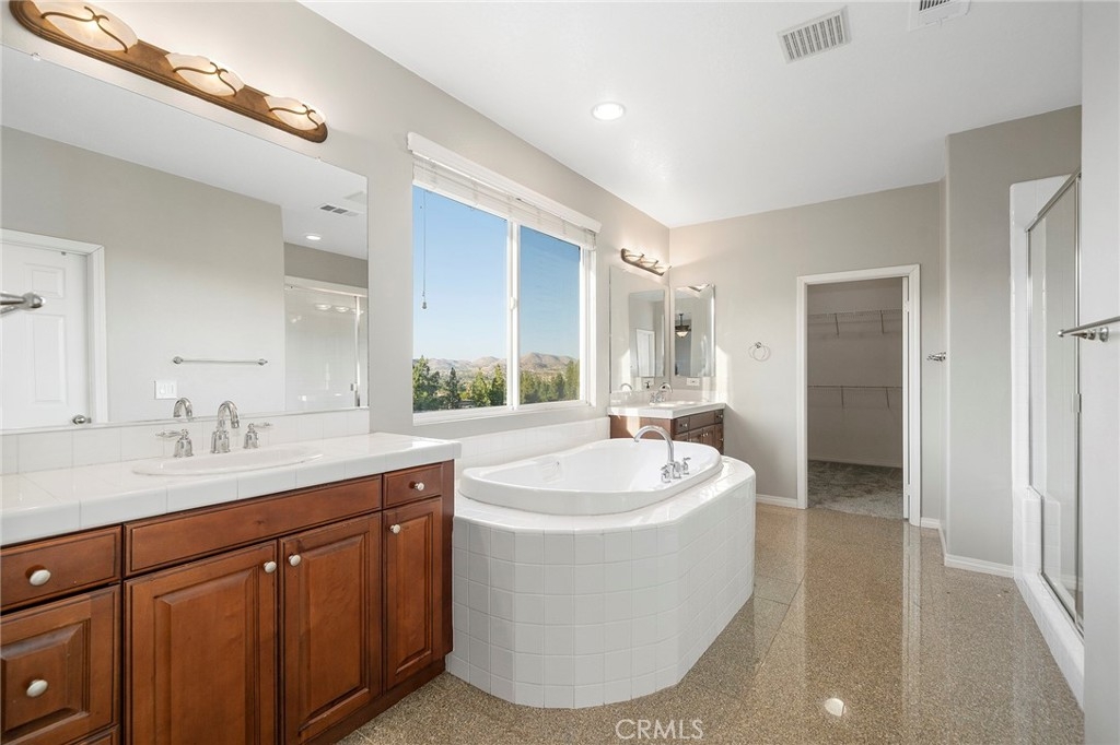 Breathtaking Views! Discover the charm of a sought-after West Murrieta home, nestled within the scenic neighborhood of Copper Canyon. This is more than a home; it's a sanctuary boasting unobstructed views of the picturesque Bear Creek Golf Course and the majestic surrounding mountains and valleys. You're greeted by a grand entrance featuring high cathedral ceilings and inviting solid wood plank floors. The living and dining areas are truly the heart of this home, radiating warmth with a cozy fireplace - perfect for creating lasting memories with loved ones. The kitchen is a culinary paradise, a haven for chefs and food enthusiasts alike. The expansive island, complemented by stainless steel appliances, a double oven, and a 5-burner stove top, opens seamlessly to the family room, forming a spacious great room that frames the mesmerizing panoramic views. Convenience meets elegance with a bedroom and bath downstairs, providing flexibility and ease of living. Ascending the stairs, you'll find the generously sized primary bedroom. Imagine waking up to stunning views and stepping onto your own private deck - the ideal spot for savoring your morning coffee. The en suite bath is a luxurious escape, offering dual vanities, a soaking tub with a view, and a spacious shower. Upstairs, you'll also find two additional bedrooms, a shared bathroom with dual sinks, and versatile office space - perfect for either a quiet retreat or a creative workspace or back to a bedroom. Outside, the allure continues with a covered patio, inviting you to dine al fresco or unwind after a day's adventure, perhaps with a glass of Temecula's finest. An open sitting area under the vast sky allows you to soak in the beauty of the valley - a place to bask in nature's vibrant hues and gentle breezes. A three-car tandem garage, offering ample storage space and the modern convenience of a tankless water heater. Plus, the location is commuter-friendly, with low taxes and no HOA fees, and it's close to Santa Rosa Plateau, shopping, and the charming Old Town Murrieta. This beautiful home in such an inviting neighborhood can be your very own haven.