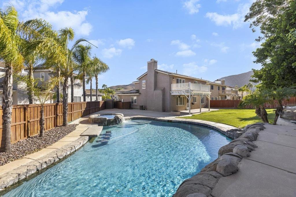 Welcome to your dream home in the highly sought-after Copper Canyon community of Murrieta! This 4-bedroom, 2.5-bathroom home is set on one of the largest lots in the area, featuring a resort-style backyard with a sparkling pool, relaxing waterfall feature, and built-in barstools—ideal for sun-soaked lounging and entertaining. Step inside to an open floor plan and spacious living areas. The formal living and dining rooms provide the perfect setting for gatherings, while the gourmet kitchen steals the show with its oversized granite island, abundant cabinet space, walk-in pantry, and casual dining area. The kitchen seamlessly connects to the family room, which features a cozy fireplace—perfect for unwinding. Also on the main level is a convenient guest bathroom, a laundry room, and the family room is sound-wired ready for movie nights, gaming, or relaxation. Upstairs, you'll find four spacious bedrooms, including the luxurious primary suite, which boasts dual sinks, a separate tub and shower, and a walk-in closet. Enjoy the serenity of your private balcony overlooking the picturesque hillsides. The additional bedrooms are thoughtfully designed, and the expanded hall/common area offers built-in cabinets and a student desk space—ideal for homework or projects. With a paid-off solar system, epoxy-coated garage floors, and proximity to the scenic Santa Rosa Plateau, shopping, Temecula Wine Country, and award-winning schools, this home truly has it all. Don’t miss this opportunity to own a stunning home in the heart of Murrieta! Welcome to your dream home in the highly sought-after Copper Canyon community of Murrieta! This 4-bedroom, 2.5-bathroom home is set on one of the largest lots in the area, featuring a resort-style backyard with a sparkling pool, relaxing waterfall feature, and built-in barstools—ideal for sun-soaked lounging and entertaining. Step inside to an open floor plan and spacious living areas. The formal living and dining rooms provide the perfect setting for gatherings, while the gourmet kitchen steals the show with its oversized granite island, abundant cabinet space, walk-in pantry, and casual dining area. The kitchen seamlessly connects to the family room, which features a cozy fireplace—perfect for unwinding. Also on the main level is a convenient guest bathroom, a laundry room, and the family room is sound-wired ready for movie nights, gaming, or relaxation. Upstairs, you'll find four spacious bedrooms, including the luxurious primary suite, which boasts dual sinks, a separate tub and shower, and a walk-in closet. Enjoy the serenity of your private balcony overlooking the picturesque hillsides. The additional bedrooms are thoughtfully designed, and the expanded hall/common area offers built-in cabinets and a student desk space—ideal for homework or projects. With a paid-off solar system, epoxy-coated garage floors, and proximity to the scenic Santa Rosa Plateau, shopping, Temecula Wine Country, and award-winning schools, this home truly has it all. Don’t miss this opportunity to own a stunning home in the heart of Murrieta!