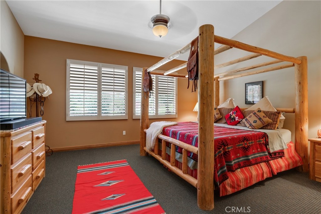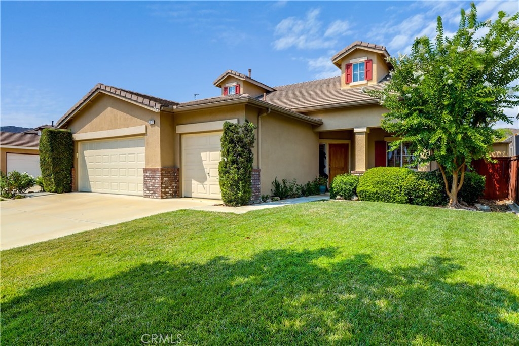 Located on a cul-de-sac in Copper Canyon this well maintained home has 3 bedrooms with a downstairs main bedroom, two and one-half baths and an office (possible 4th bedroom). Entering through the beautiful wood front door there is an open floor plan with vaulted ceilings. The kitchen features newer stainless appliances, large kitchen island with seating, updated counters and backsplash, painted cabinets and open shelving. Dining/family room boasts vaulted ceiling, newly painted custom arched shelving, newer French patio doors and shutters. Double doors and a custom barrel shaped entry open to the main bedroom that has shutters, ceiling fan and a large bathroom with walk in closet. Upstairs there are 2 additional bedrooms with ceiling fans, shutters, full bathroom and open loft area. The rear yard offers privacy with open space behind you, views of the Santa Rosa Plateau, large covered patio, fire-pit, gazebo area and side yard with storage shed. Close to shopping, schools, hiking and biking trails. No HOA.
